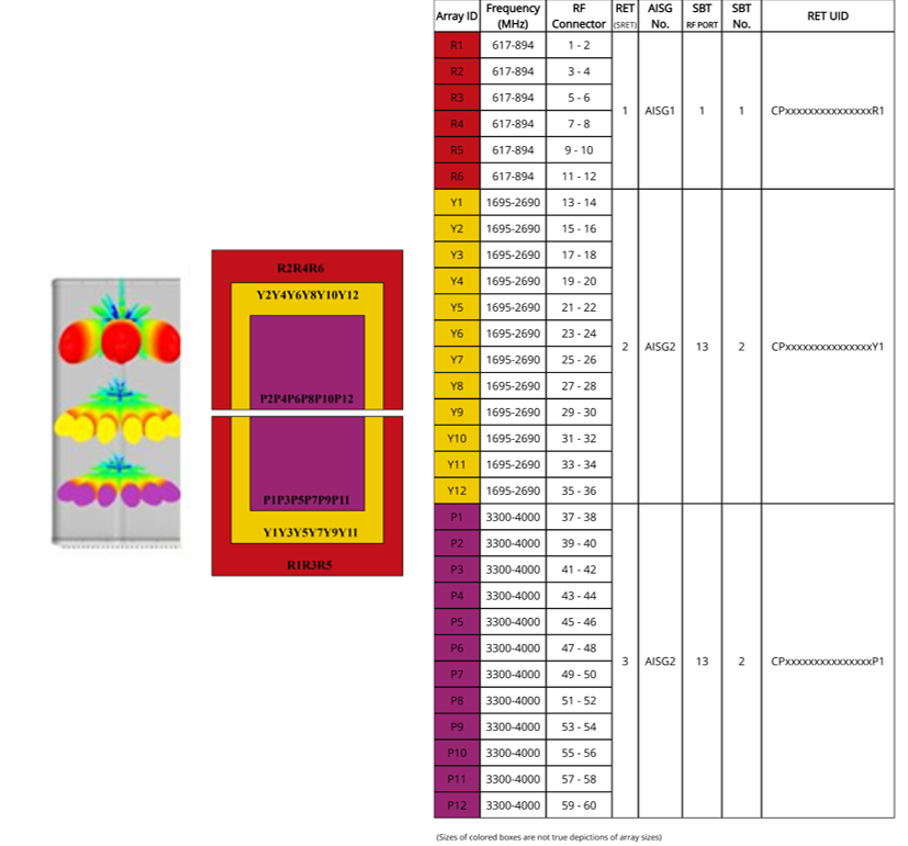 • One RET and one SBT for LB , Two RET and One SBT Mid and High band for remote optimization and RET control