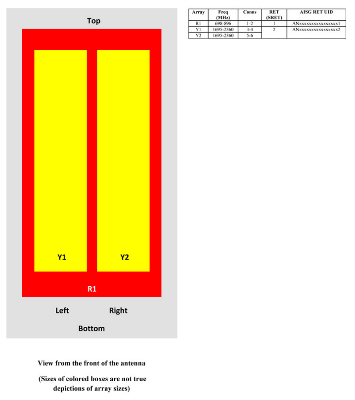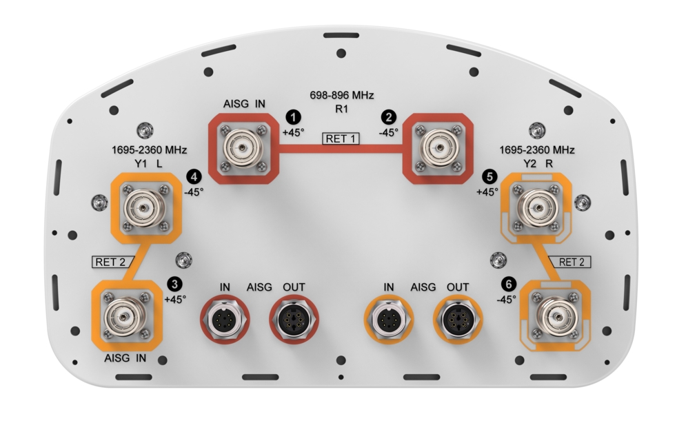 - One RET for low band and one RET for both high bands to ensure same tilt level for 4x Rx or 4x MIMO