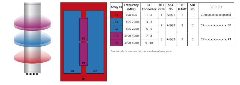| Internal RET | High band (1) | Low band (1) | Mid band (1) |