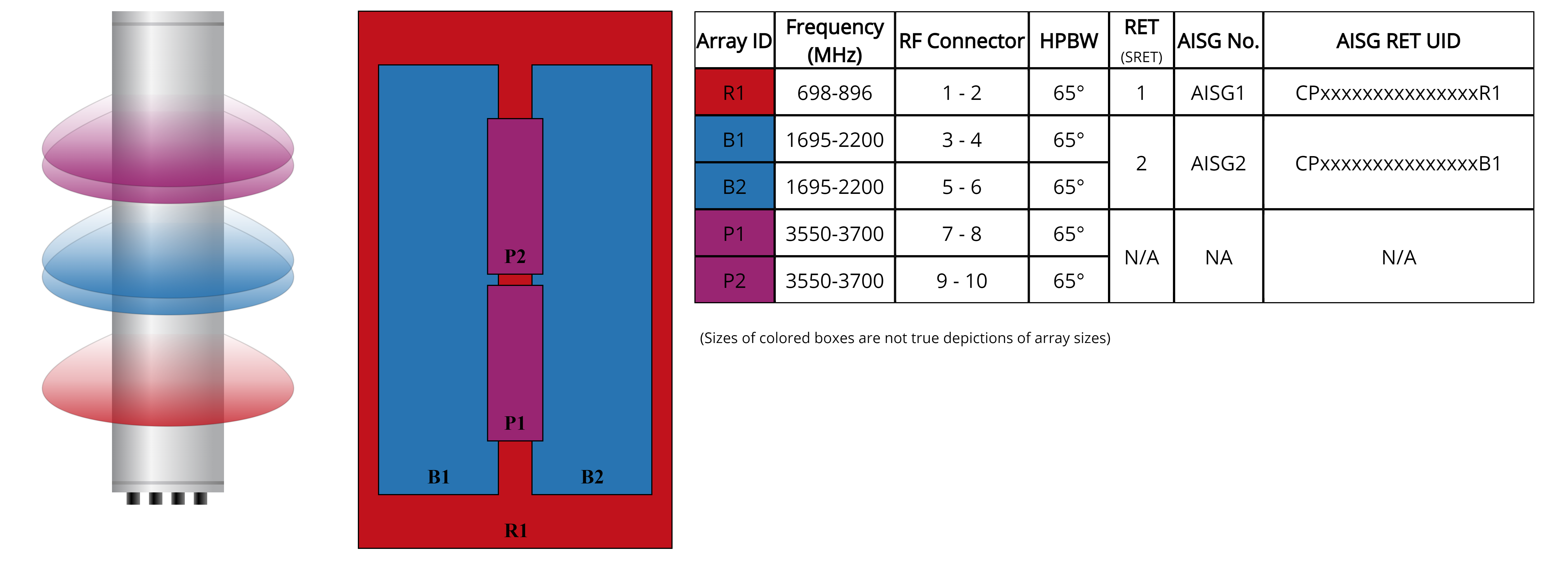 • One LB RET and one MB RET, both Mid bands are controlled by one RET to ensure same tilt level for 4x MIMO