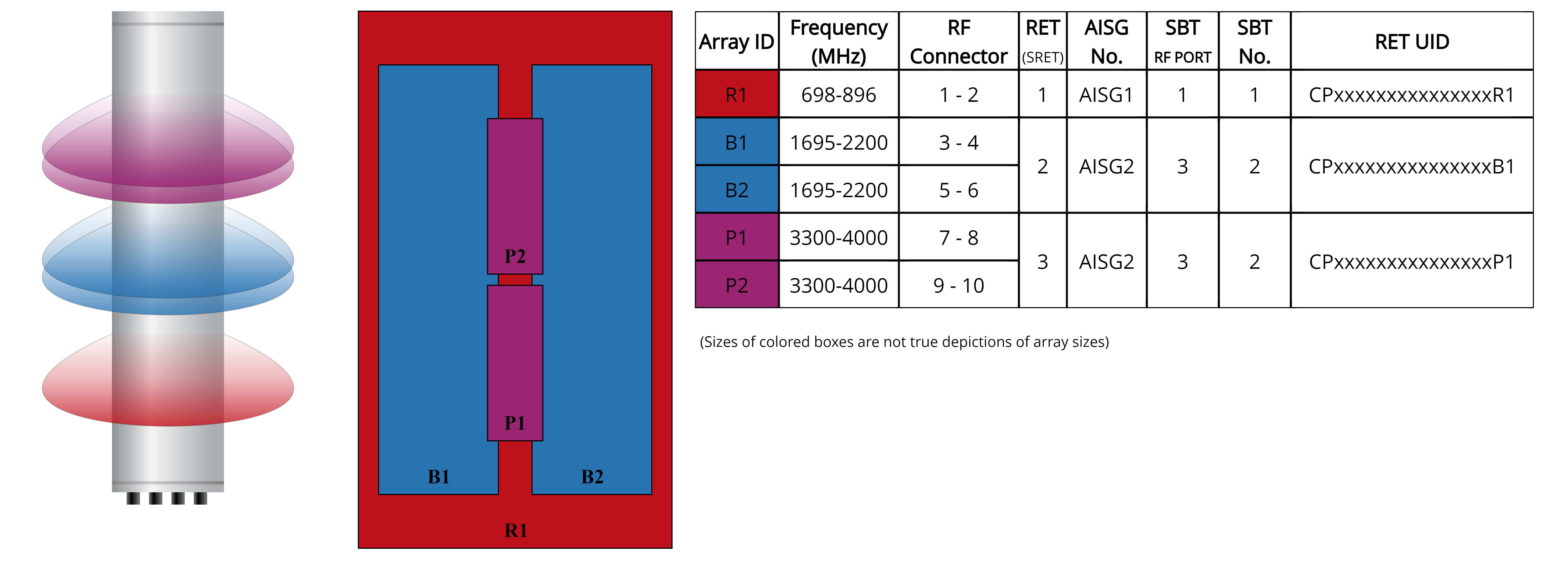 Internal RET High band (1) | Low band (1) | Mid band (1)