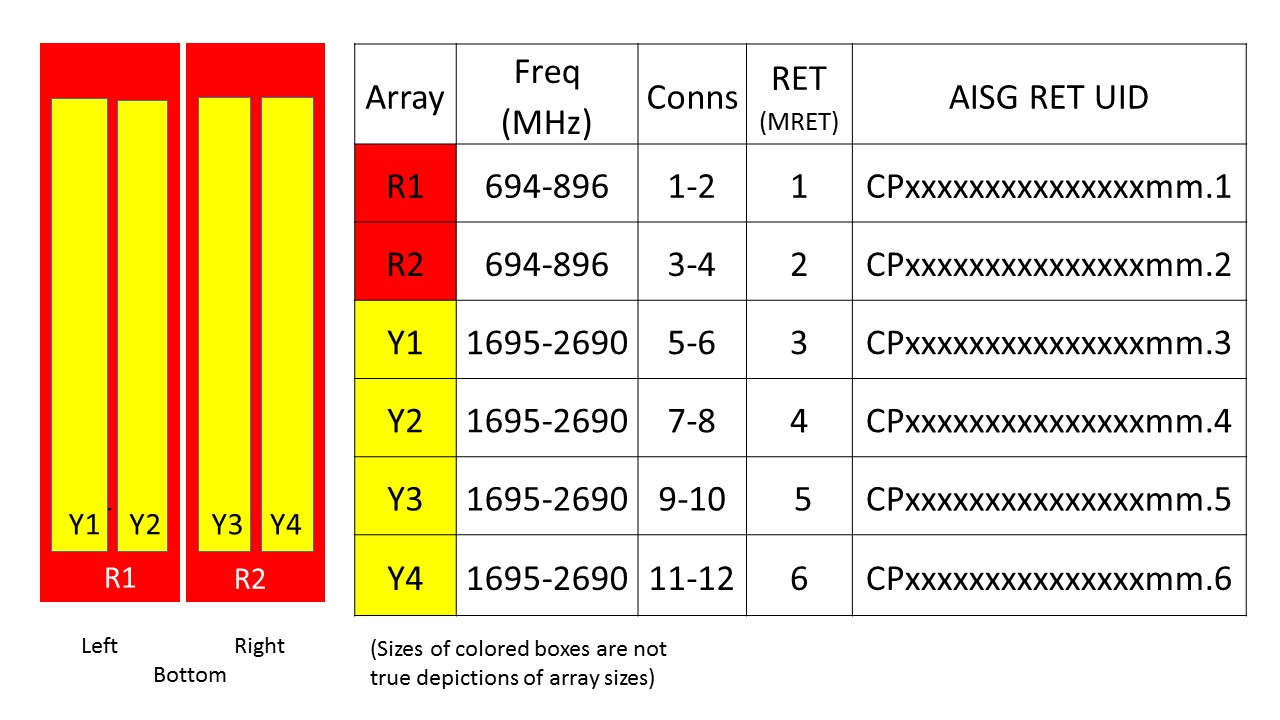 - All internal RET actuators are connected in “Cascaded MRET” configuration
