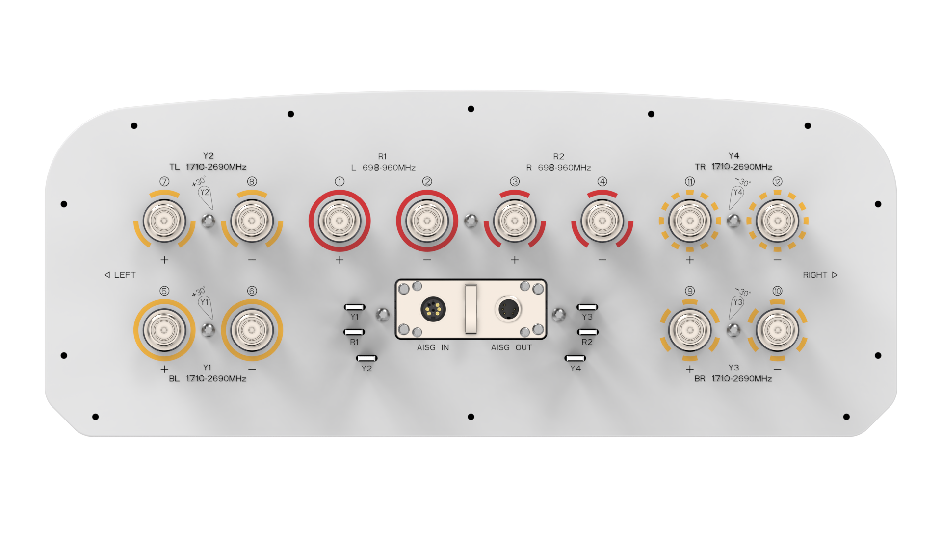 - Reliable Performance: The hybrid twin-beam design ensures perfectly symmetrical arrays within the antenna, delivering consistent pattern performance across all ports. Optimized for 4T4R (4x MIMO) configurations, it maintains dependable functionality across the entire band for both sector and twin-beam applications