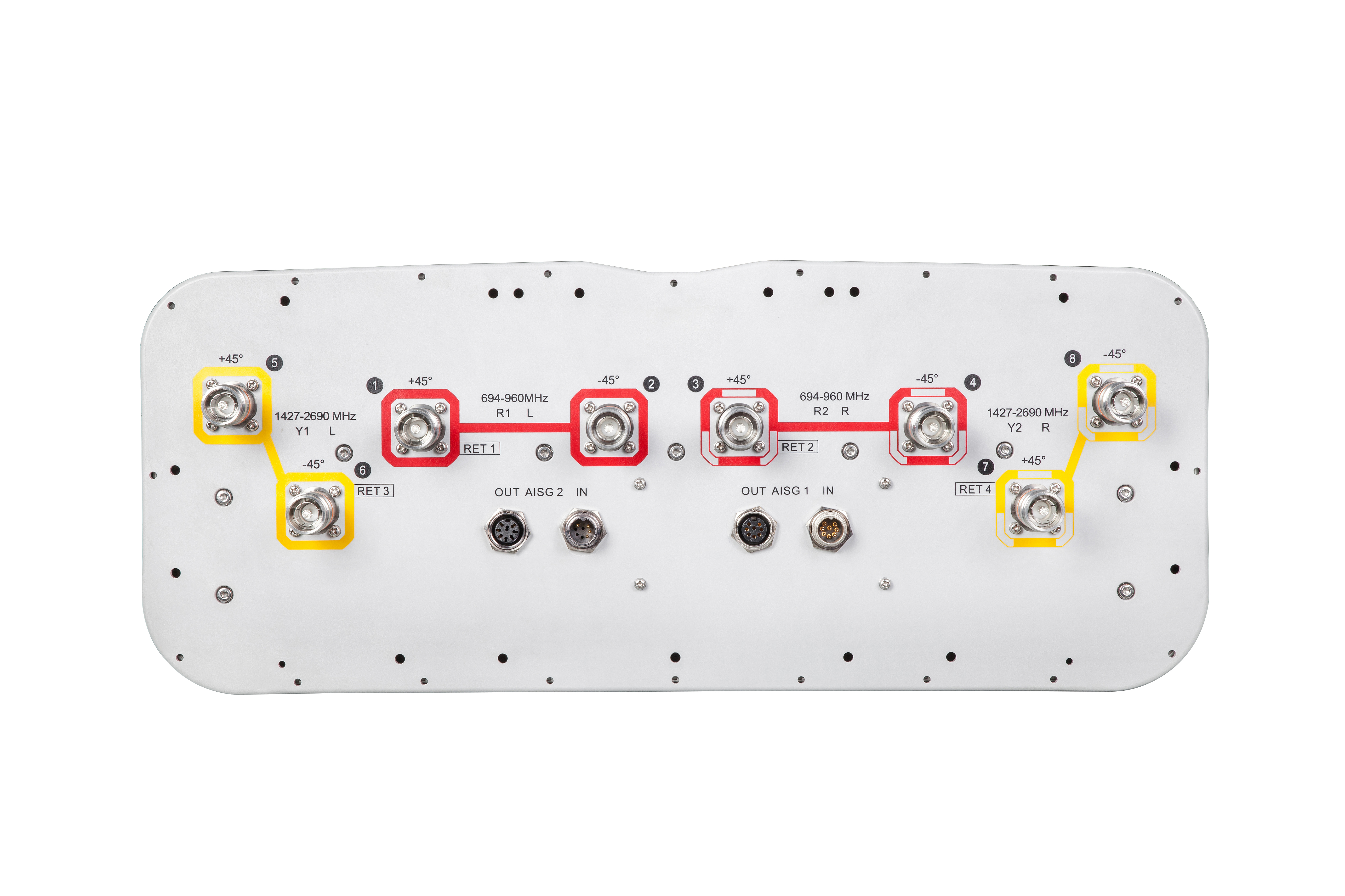 8-port sector antenna, 4x 694–960 and 4x 1427–2690 MHz, 65° HPBW, 4x RET