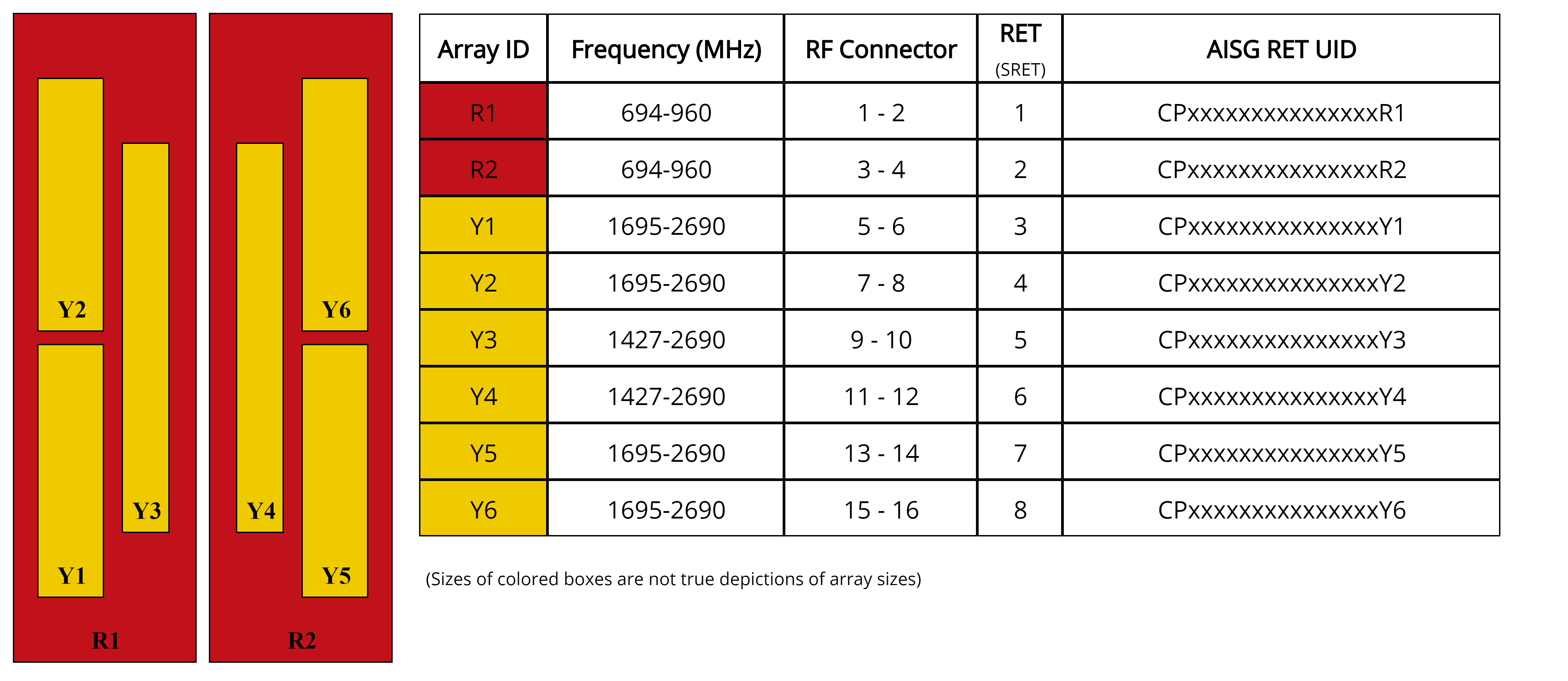 | Internal RET | Low band (2) | Mid band (6) |