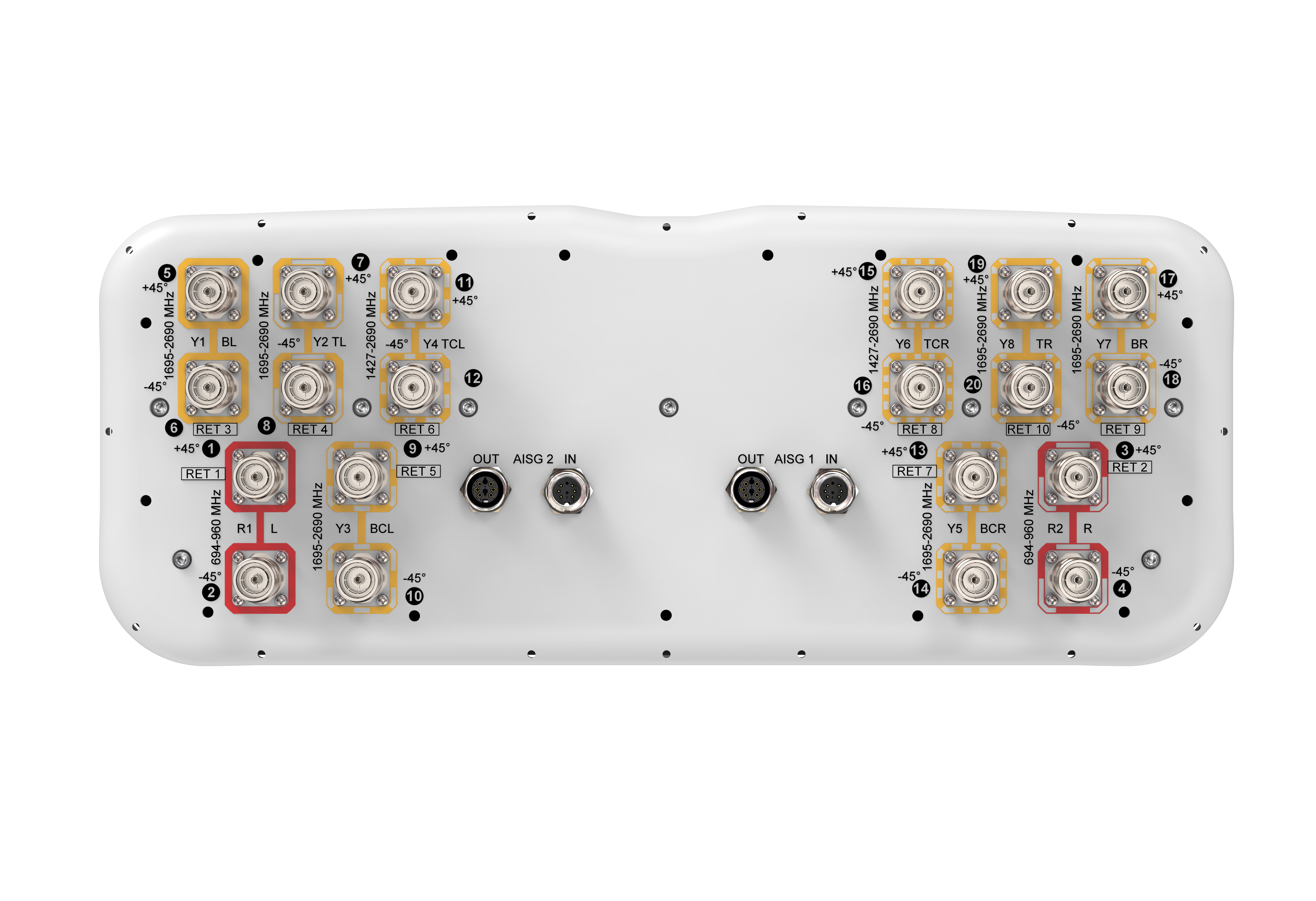 20-port sector antenna, 4x694-960 4x1427-2690 and 12 x 1695-2690 MHz , 65° HPBW, 10xRET