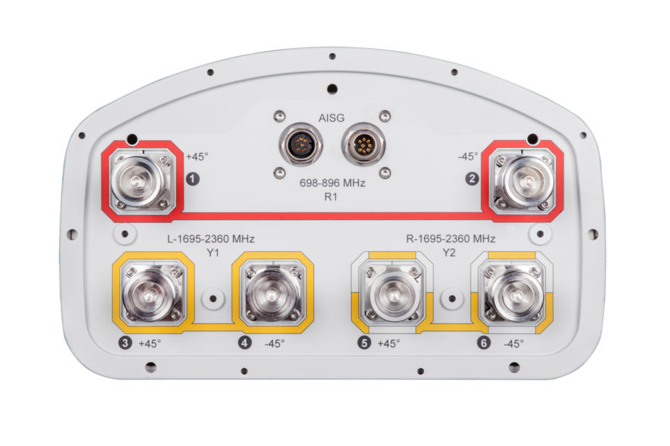 6-port sector antenna, 2x 698–896 and 4x 1695–2360 MHz, 85° HPBW, 3x RET