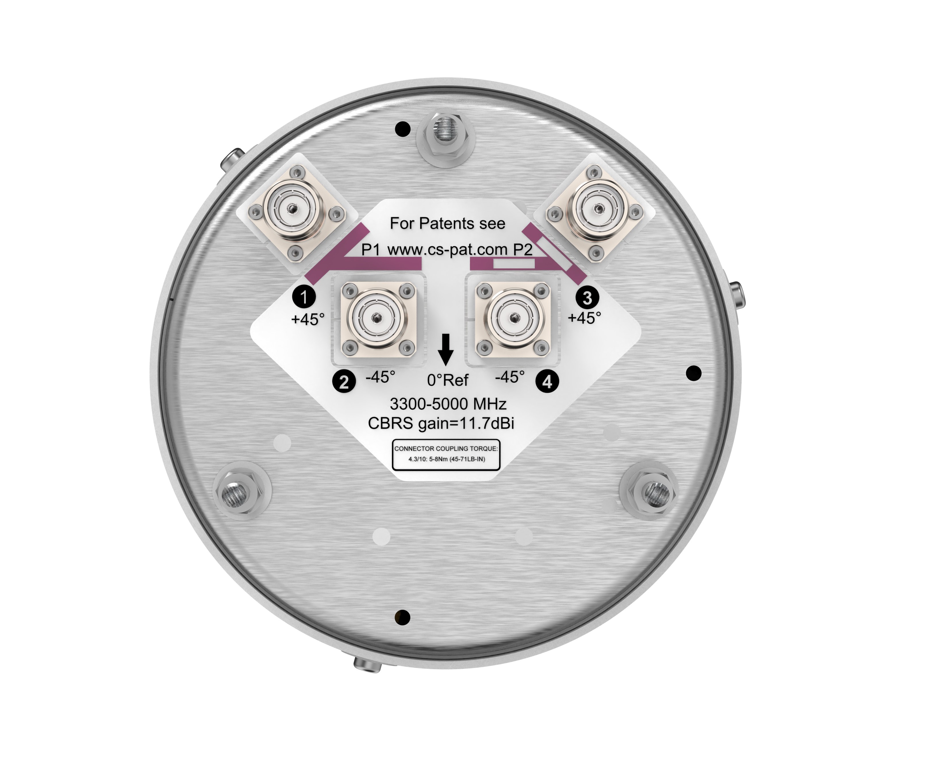 4-port small cell antenna, 4x 3300-5000 MHz. 360° Horizontal Beamwidth, fixed tilt.