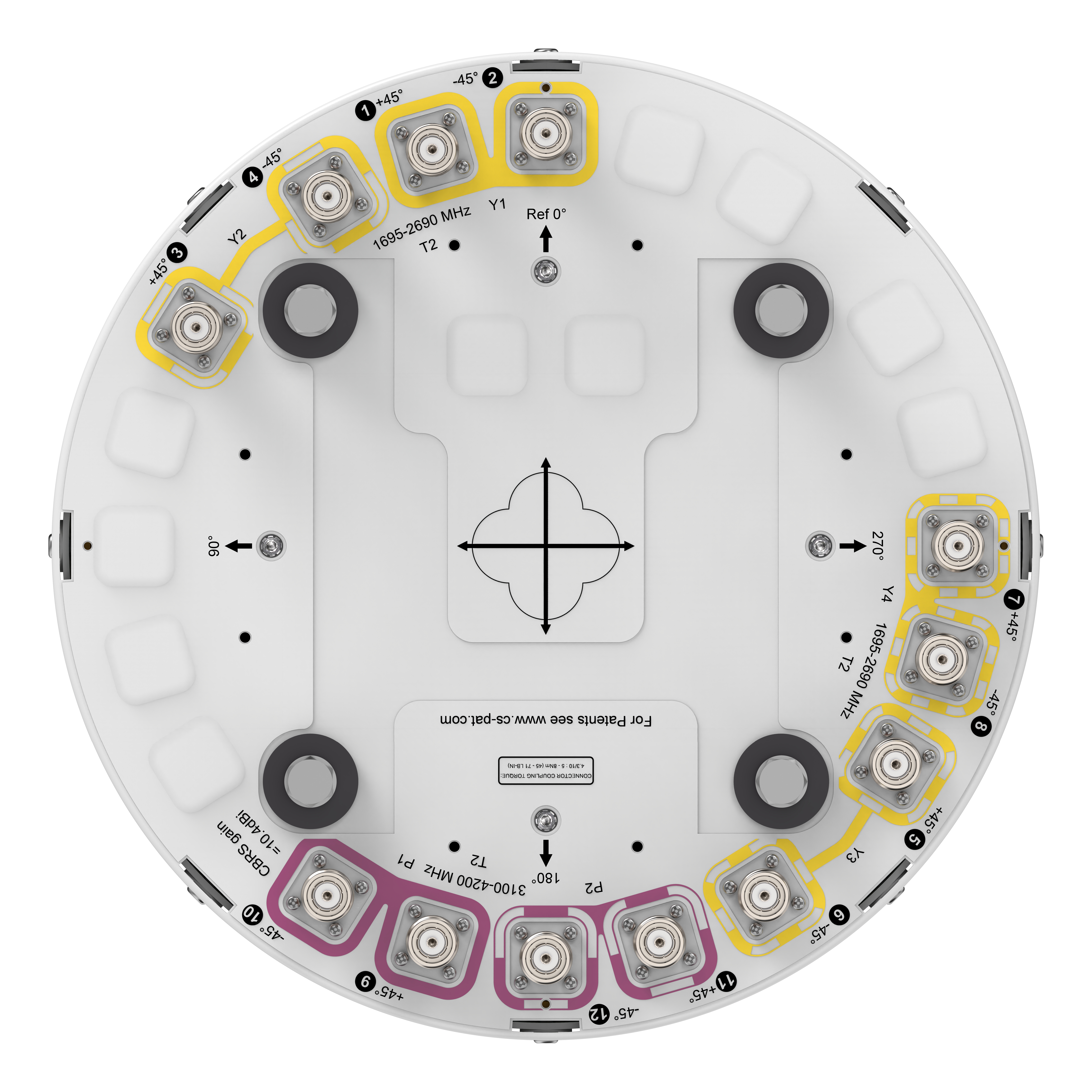 12-port small cell antenna, 8x 1695–2690, 4x 3100- 4200 MHz, 360° Horizontal Beamwidth, fixed tilt.