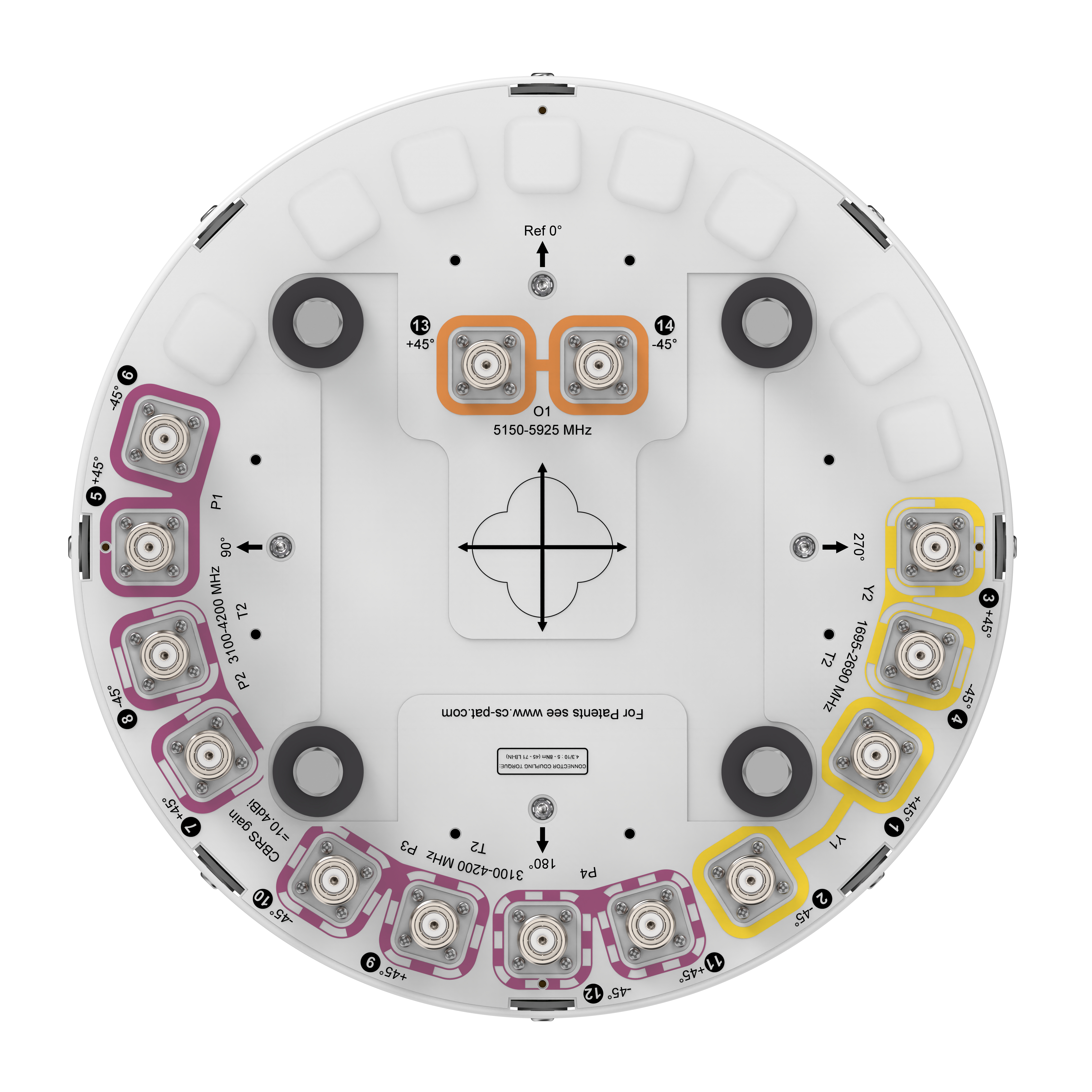 14-port small cell antenna, 4x 1695-2690, 8x 3100- 4200,2x 5150-5925 MHz, 360° Horizontal Beamwidth, fixed tilt.