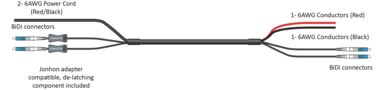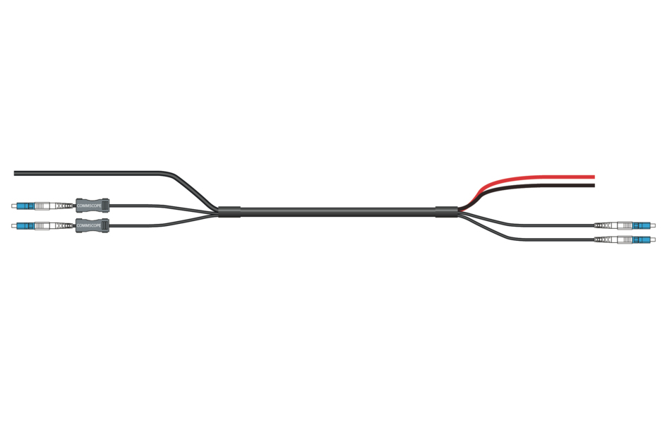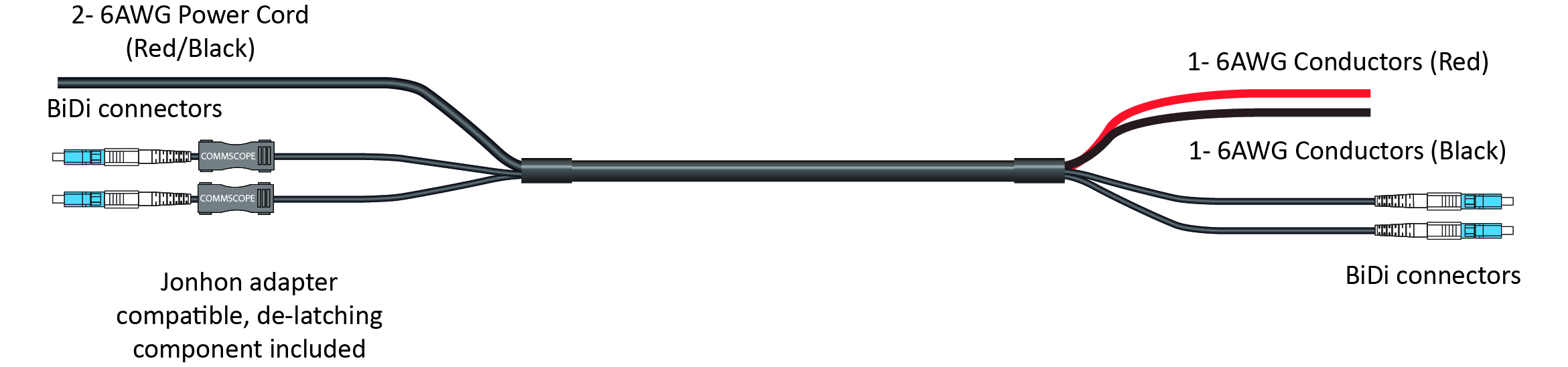 HELIAX® Hybrid Cable Assembly, 6-OVP box to RRU, Power Cord to RRU UR Type TC-ER, 2 Power conductors 6 AWG RRU, 6 AWG OVP, 2 fiber Bi-Di Jonhon adapter compatible pvc jacket aluminum armor, OVP gland insert kit included