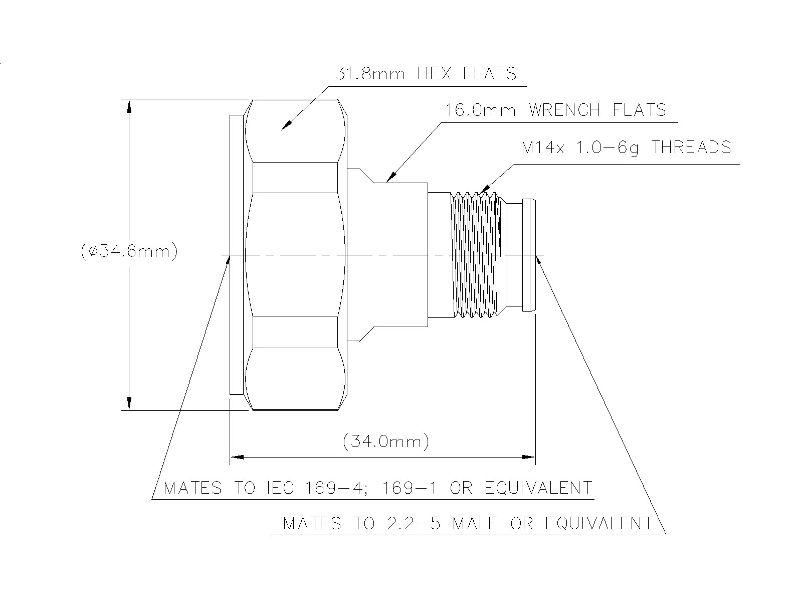 2.2-5 Female to 7-16 DIN Male Low-PIM Adapter