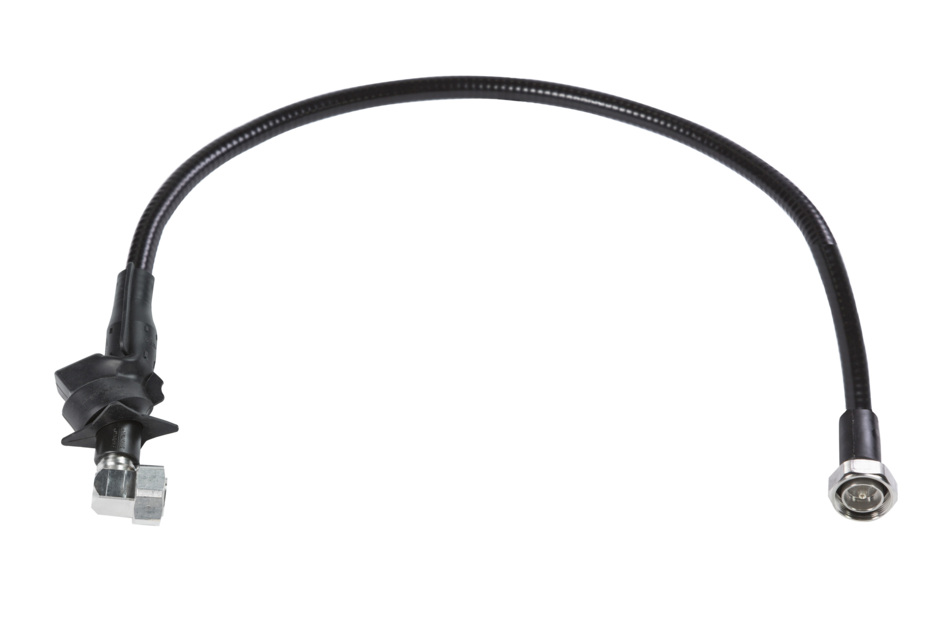 HELIAX® 1/2" Superflexible SureFlex® Jumper with interface types 4.3-10 Male Right angle and 7-16 DIN Female with HELIAX® SureGuard weatherproofing, 1M, (boot on HR end only, and DF end no boot)