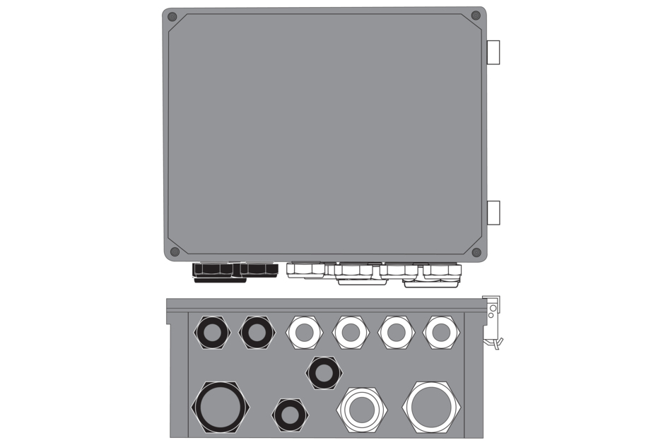 HELIAX® Fiber and Power Junction Box for 1 Hybrid Trunk, 1 Fiber Trunk, 1 Power Trunk, 8 Hybrid Jumper, Grey Terminal Blocks, 2 Grounding Blocks
