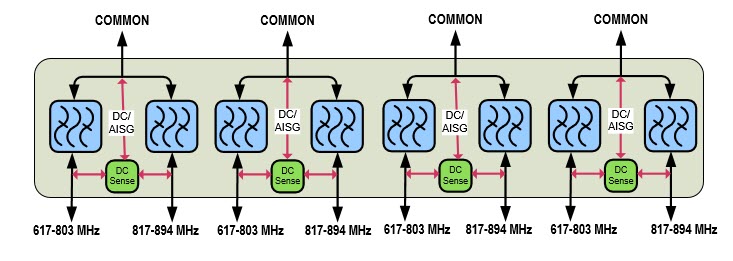 4 Pack Diplexer 617-803/817-894 MHz, DC Sense, 4.3-10