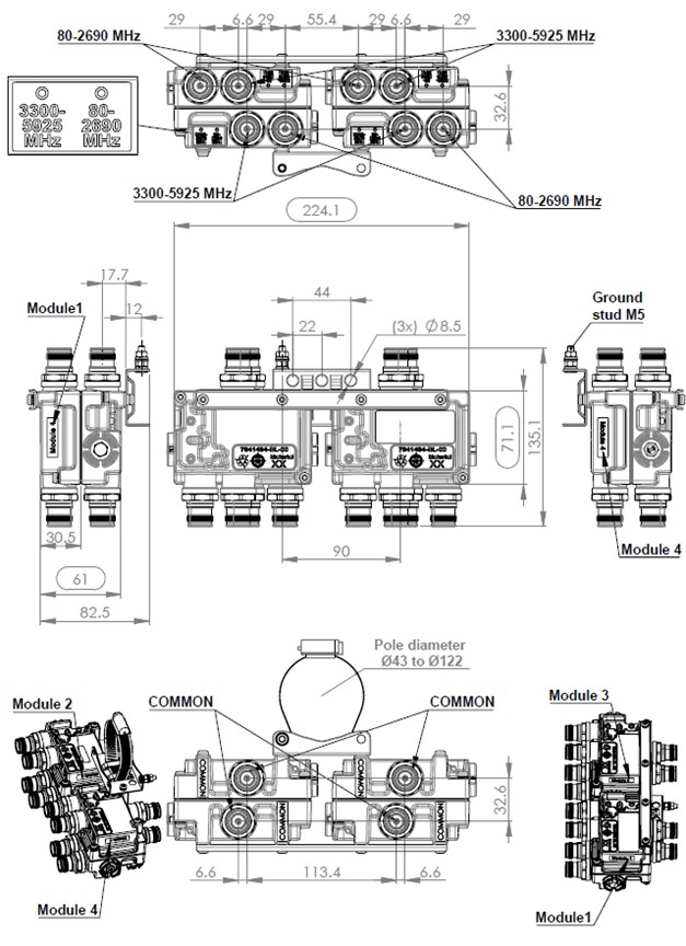 Ultra Compact Quad Diplexer 80-2690MHz/3300-5925MHz, 4.3-10