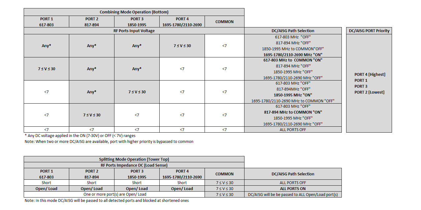 | Port Designation | 617-803 | 817-894 | PCS | AWS+WCS+BRS | AWS+WS+BRS |