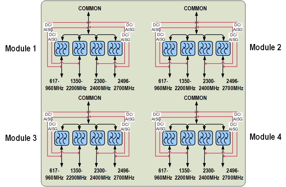 | dc/AISG Pass-through, demultiplexer | Branch 1 | Branch 2 | Branch 3 | Branch 4 |