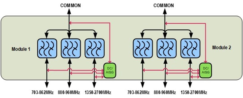 2X Triplexer 703-862/880-960/1350-2700, DC Smart Bypass, with 4.3-10 connectors