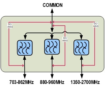 1X Triplexer 703-862/880-960/1350-2700, DC bypass on all ports, with 4.3-10 connectors
