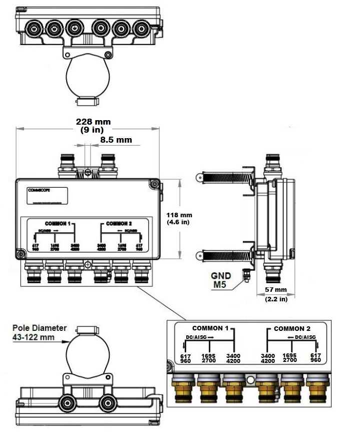 Compact Twin Triplexer 617-960/1695-2700/3400- 4200 MHz, 4.3-10 connectors