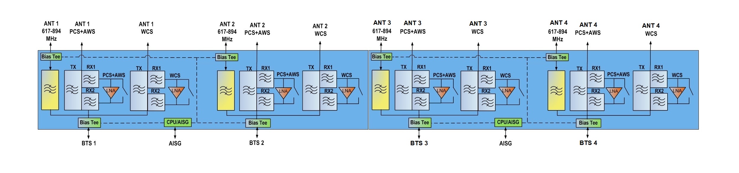 Tower Mounted Amplifier,Quad Configuration PCS/AWS 1–4 WCS, 617–894 MHz bypass 4.3-10