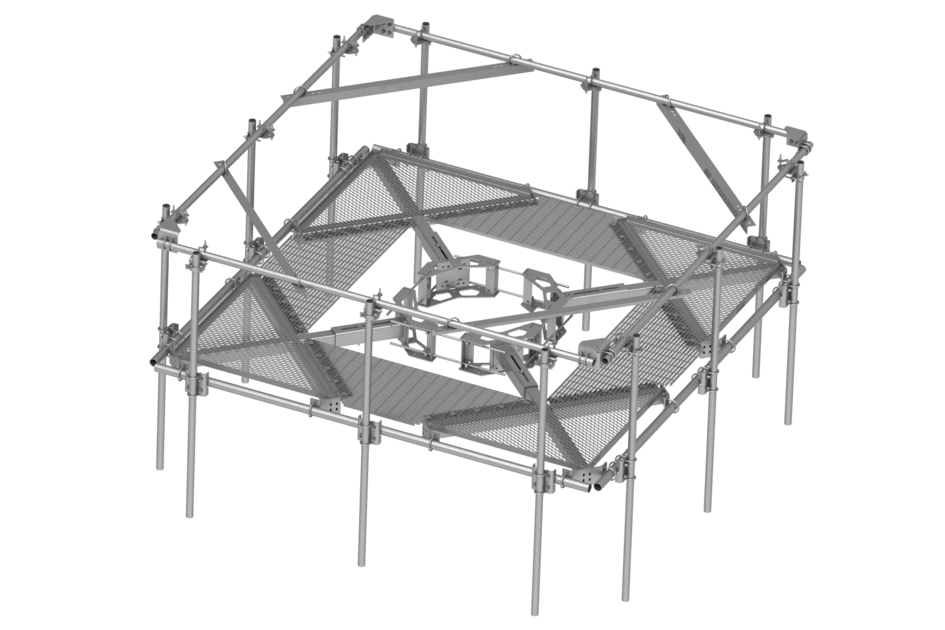 4-Sector Monopole Co-location Platform kit, 30 in to 60 in OD, 12 ft 6 in face, with (12) 96in x 2-3/8OD Antenna Pipes