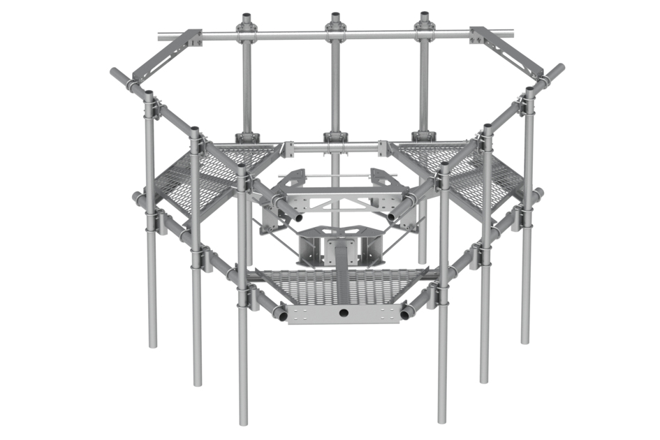 Low-Profile Co-location Platform Kit for 12in to 38in OD Monopoles, 8 ft face, (9) 2-7/8" OD x 96" Pipes, with Support Rail Kit