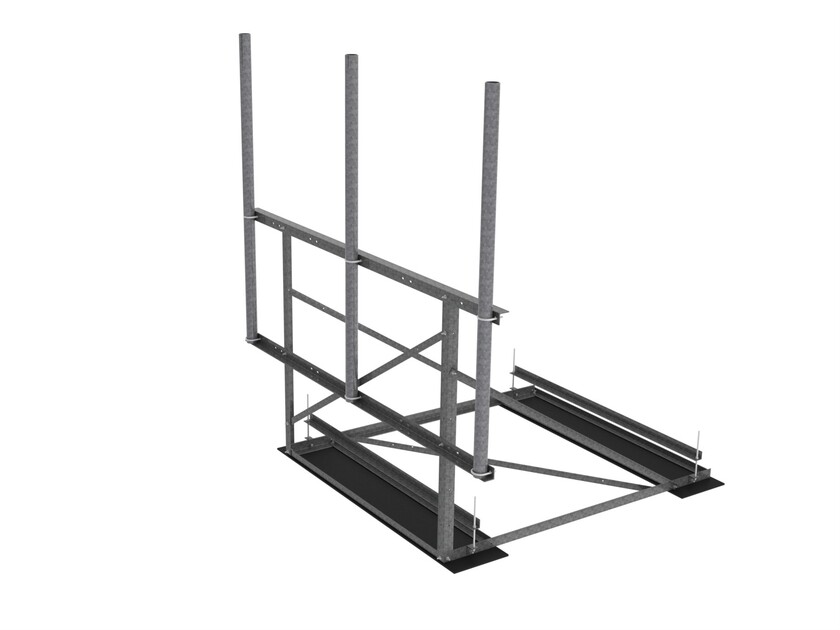 Non-Penetrating Roof Frame, 12 ft face, Three 3-1/2 in OD x 96 in pipes