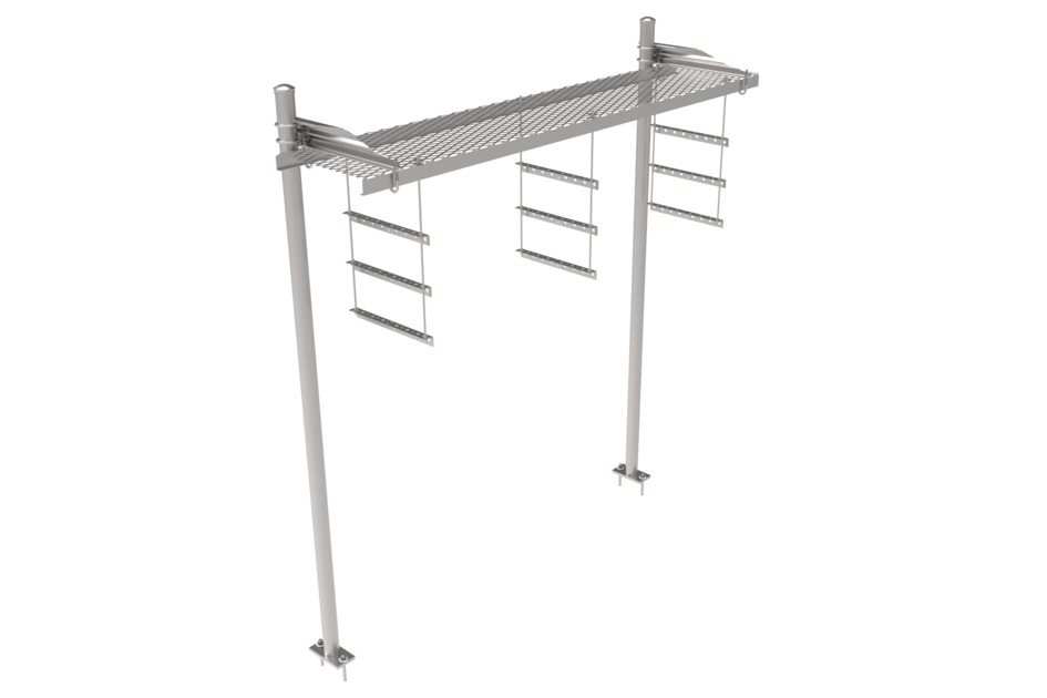 Safety Grated Waveguide Bridge Kit, 24 in x 10 ft,with two 10 ft 6 in base shoe posts & 24 in 3 rung Trapeze Kit